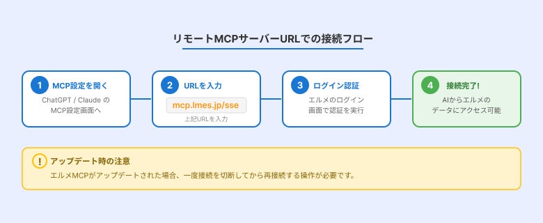 エルメとAIサービスをMCP接続する方法は、以下の2つがあります。