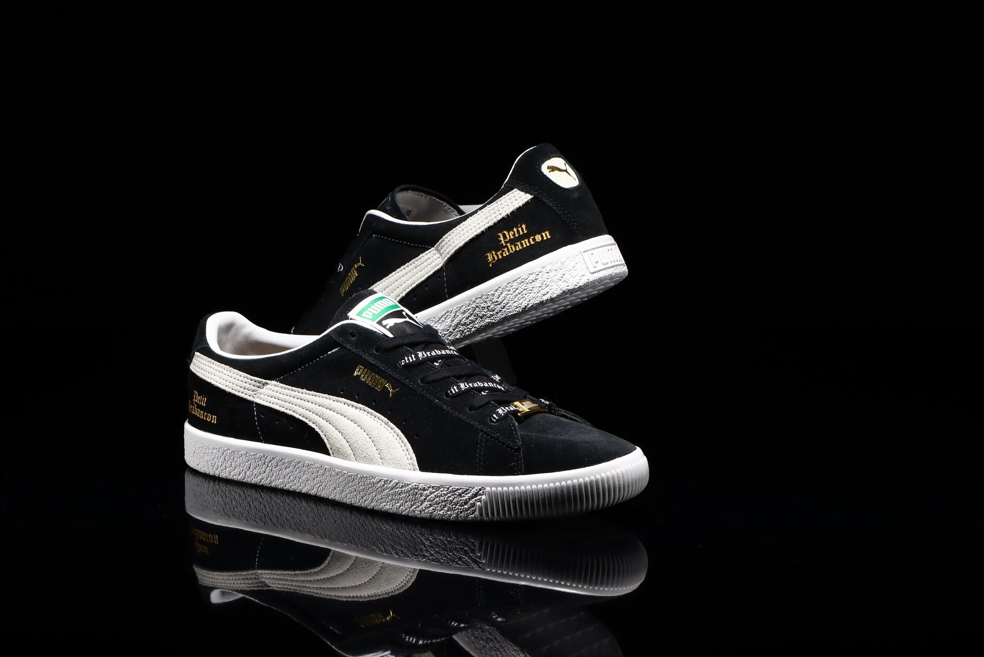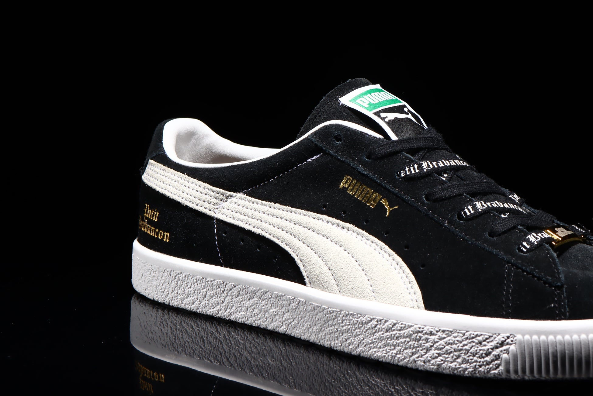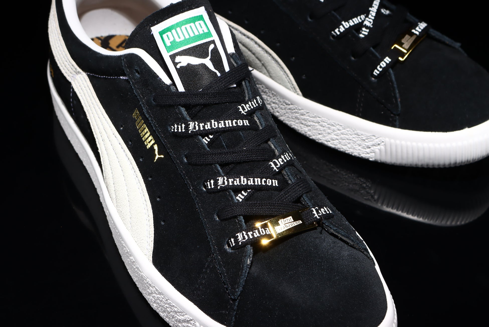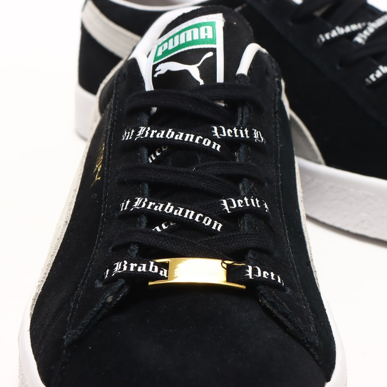 今回はアルバムのリリースを記念して、50年以上もの長きにわたって様々なシーンで愛され続けてきたPUMA SUEDEをPetit Brabancon仕様にカスタムしました。ヒール部にはPetit Brabanconのロゴを刻印し、オリジナルシューレースやデュプレも付属。