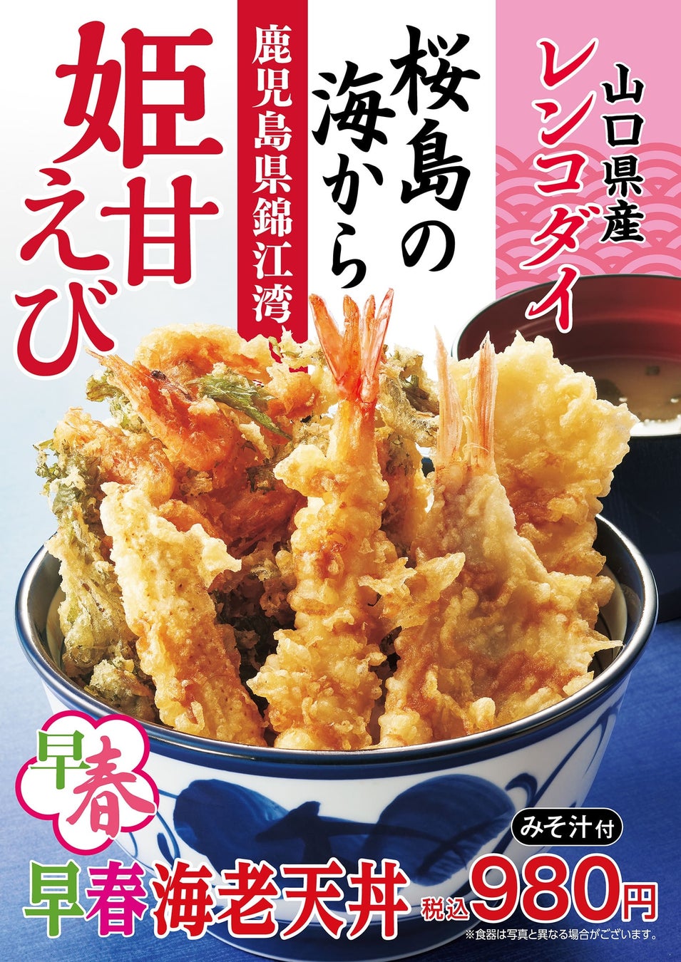 天丼専門店「天丼てんや」は、新年の幕開けを華やかに彩る『早春海老天丼』と、人気のとり天を“たれづけ”にした『たれづけ親子鶏天丼』などを1月9日(木)より期間限定商品として販売します。