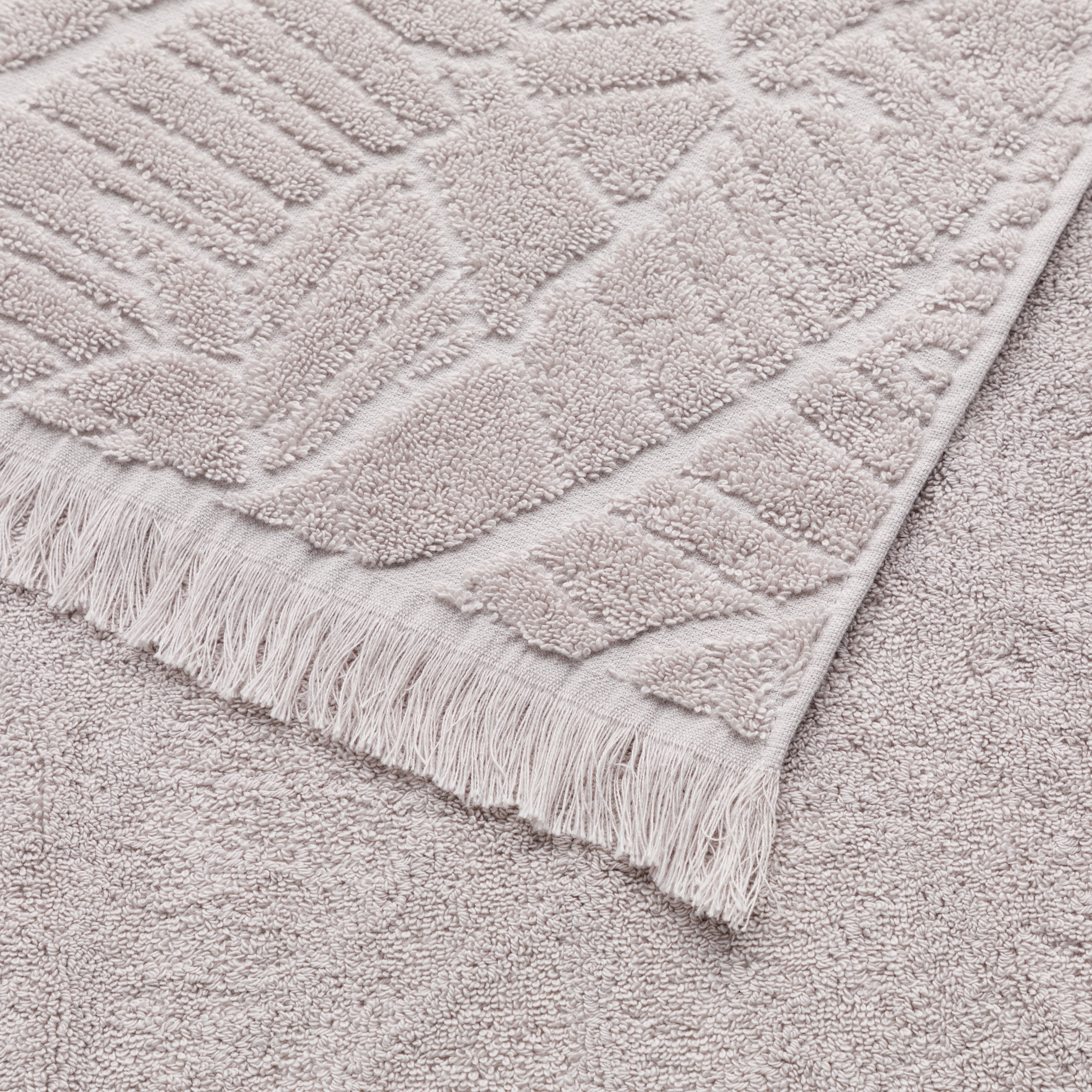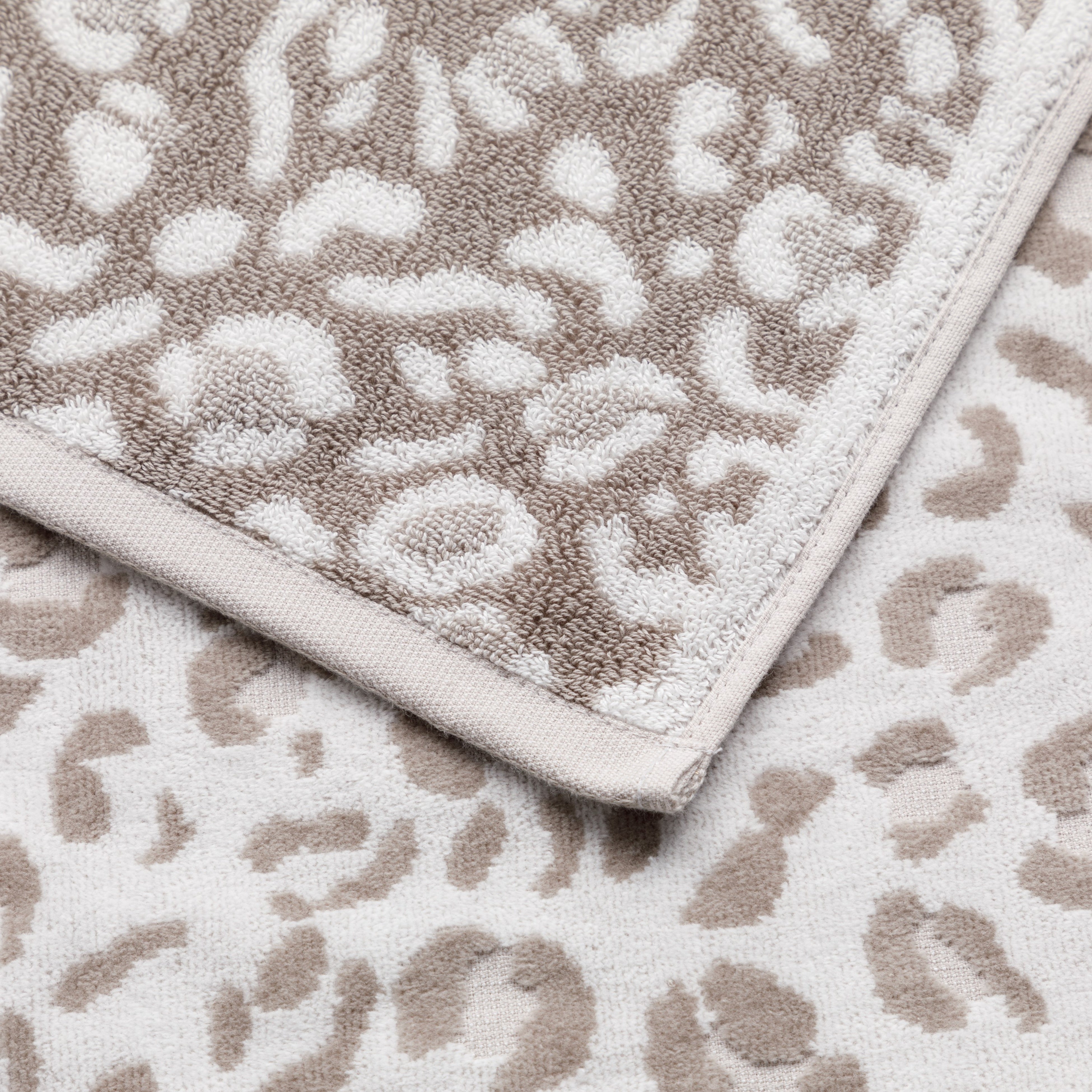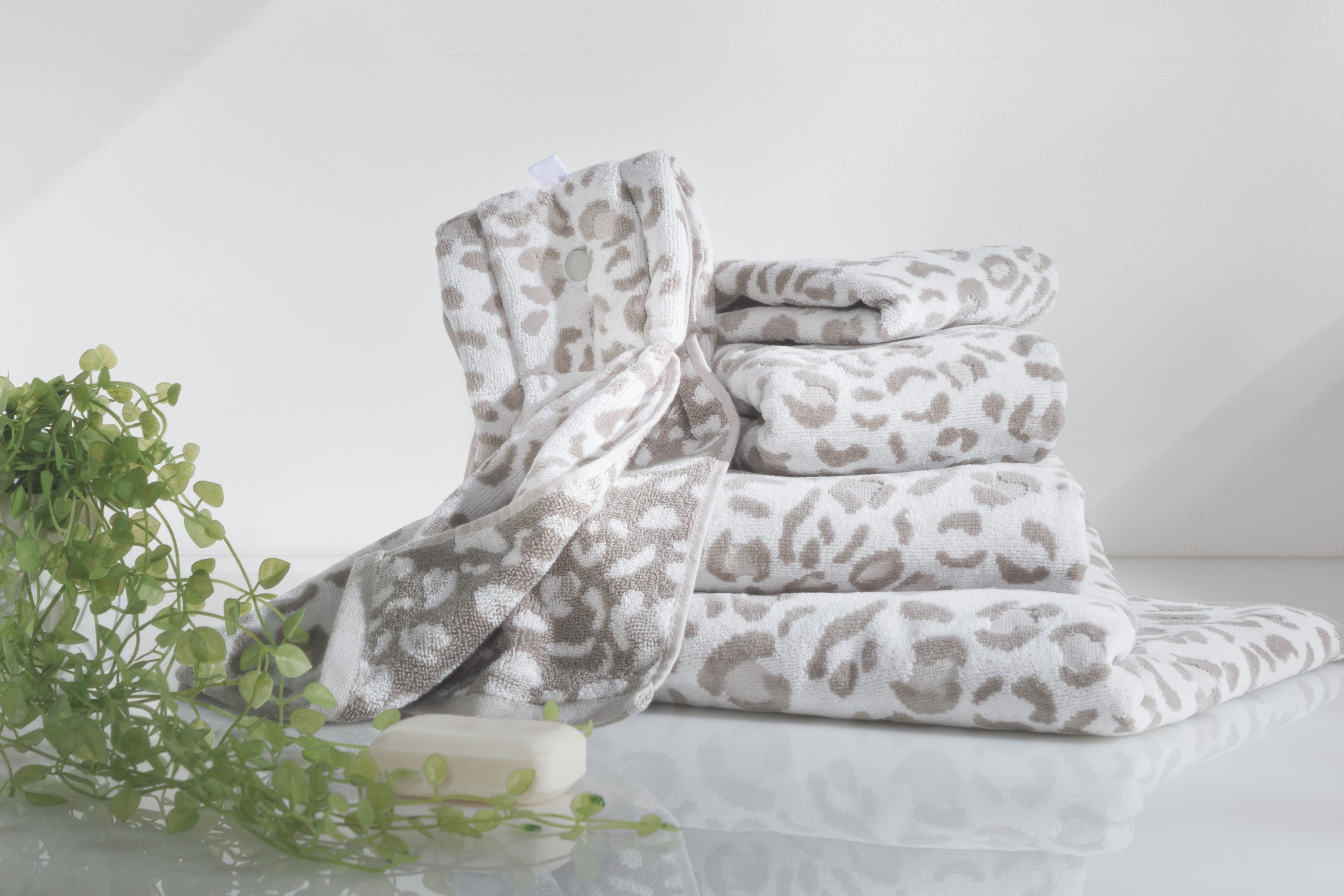 ファッションで人気のレオパード柄には、ふちに一部ラメの装飾が施されており、バスシーンを一層華やかに彩ります。バナナリーフ柄は、上品なライトグレーカラーで、立体的な柄織とフリンジが特徴です。