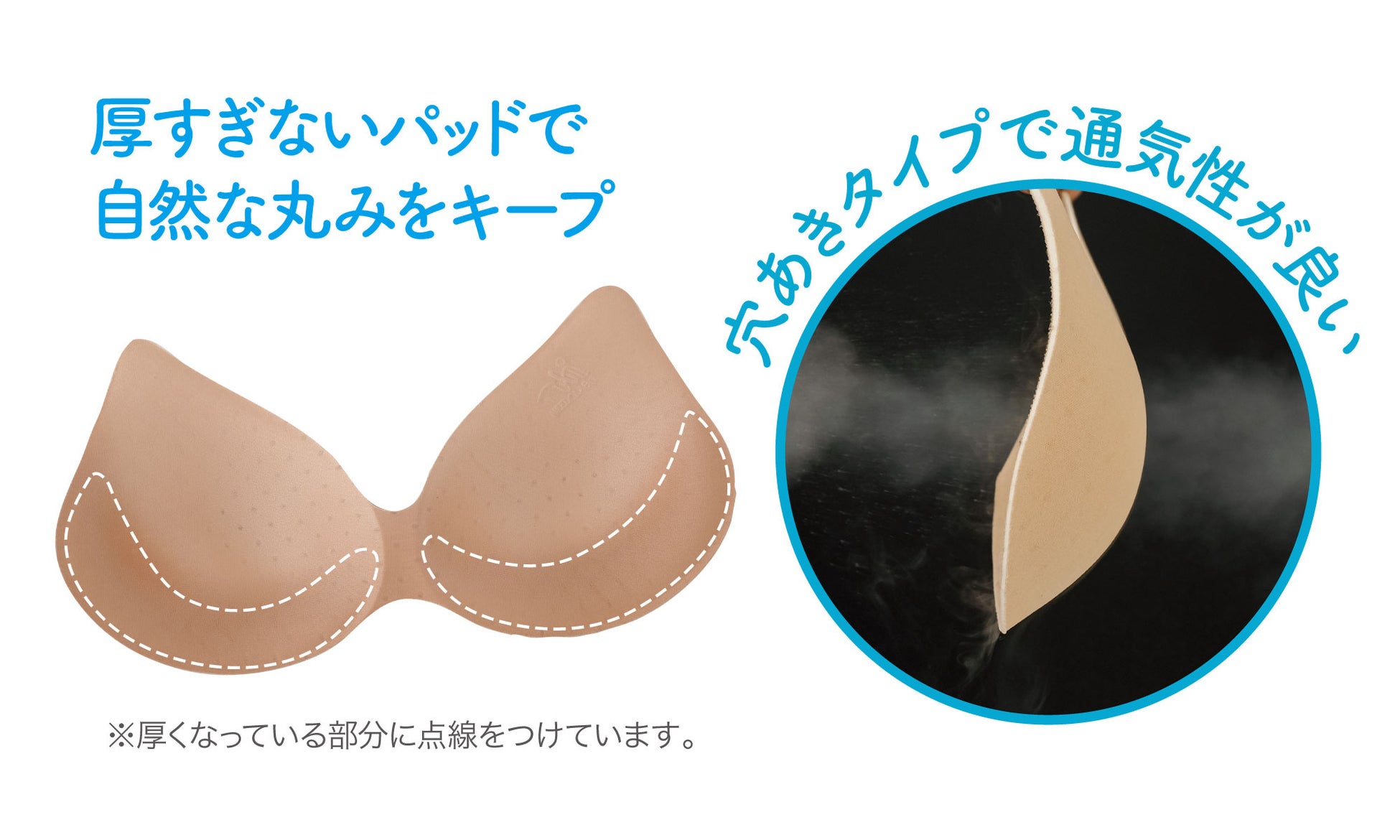 左右一体型のパッドが横へ流れがちなバストをしっかりホールドし、美しいバストラインをキープします。