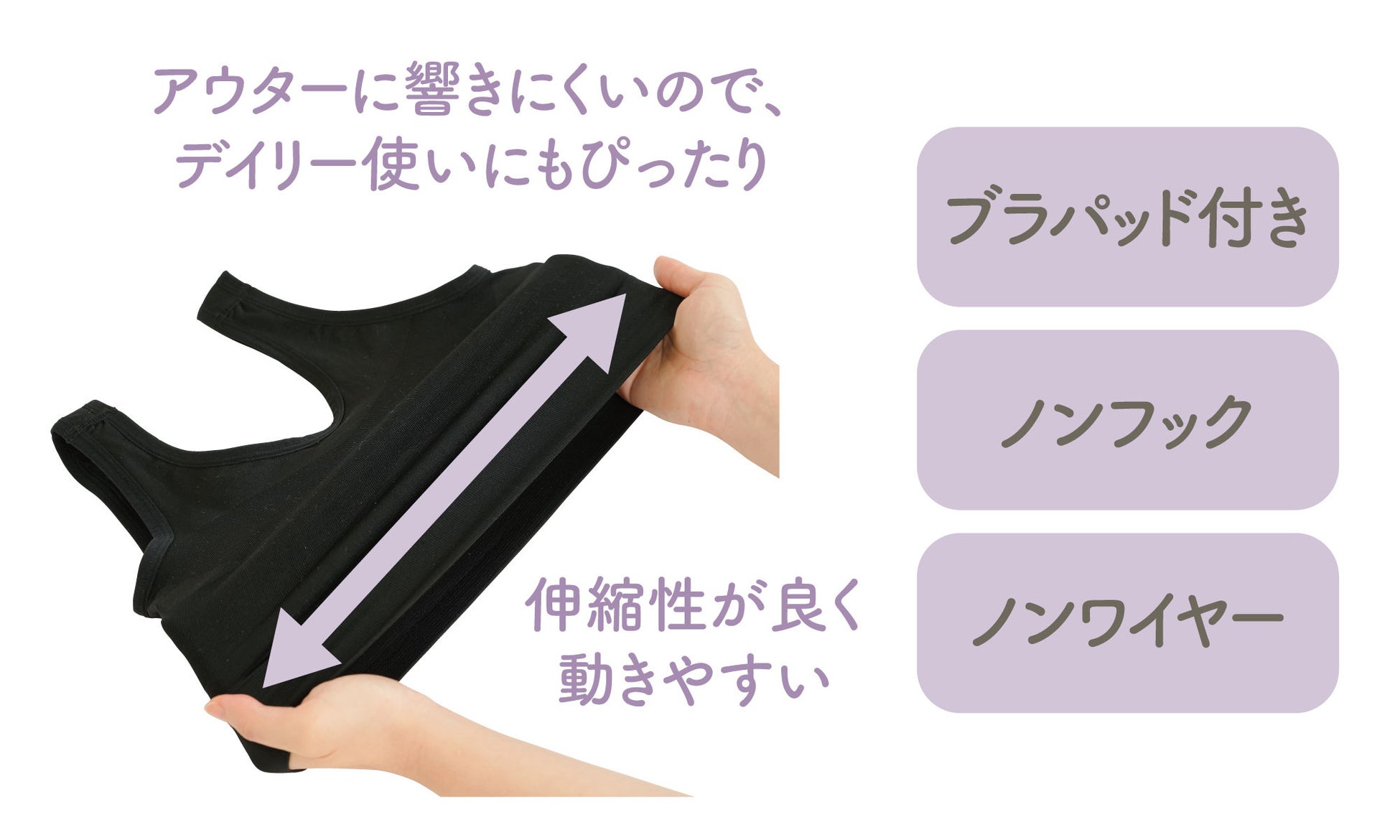 ノンフック&ノンワイヤーで締め付けを感じにくい。