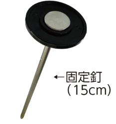 「組み立てのいらないシート釘」にも押さえ盤と釘がセットされており、そのまま打ち込むことができます。U字型のピンより地面に刺さりやすく、抜くときも抜けやすいのが特徴です。使用シーンに合わせてお選びいただけます。