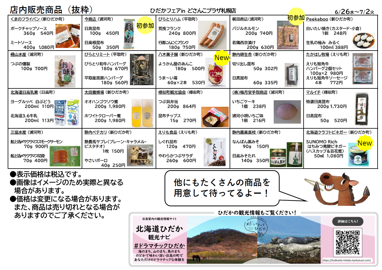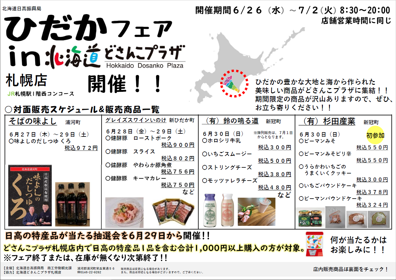 ひだかフェアinどさんこプラザ札幌店の開催について