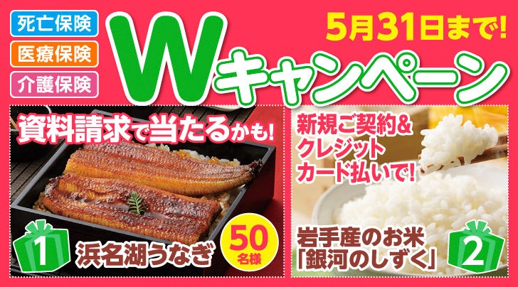 【SBIいきいき少短】死亡保険・医療保険・介護保険の資料請求で「浜名湖うなぎ」が抽選で当たるキャンペーンを実施~クレジットカード払いの新規ご契約でもれなく「お米(岩手産銀河のしずく)」をプレゼント~