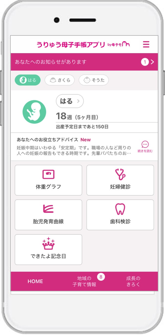 この度、妊娠から子育てまで切れ目のない支援の一環として『うりゅう母子手帳アプリ』を7月1日より運用します。