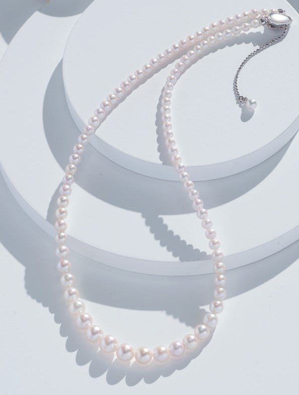 艶感、テリ、煌めき、輝きを楽しめるパールジュエリーを紹介するブランド。今回は伊勢産の美しいアコヤパールをサイズグラデーションで仕立てた、大人の女性に相応しいネックレスを紹介します。