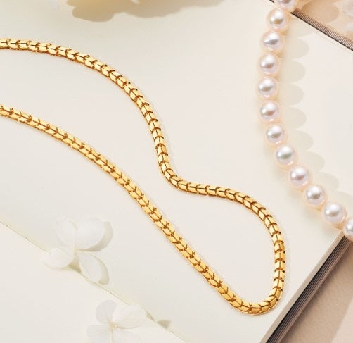 国内製造にこだわり、全てのパーツとチェーンを自社工場で作成するチェーンメーカーによるブランド。磨き上げられた18Kの圧巻の輝きに目を奪われる、造幣局検定マーク付きのネックレスを紹介します。
