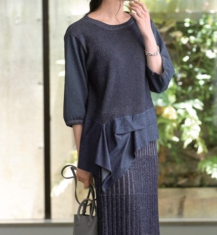 C et Beeは大人の女性のためのクラスアップかジュエルを提案するブランドです。今回はデニムライクな表情を持つプルオーバーをご紹介。アシンメトリーのデザインなど、感性とこだわりが光る1着です。