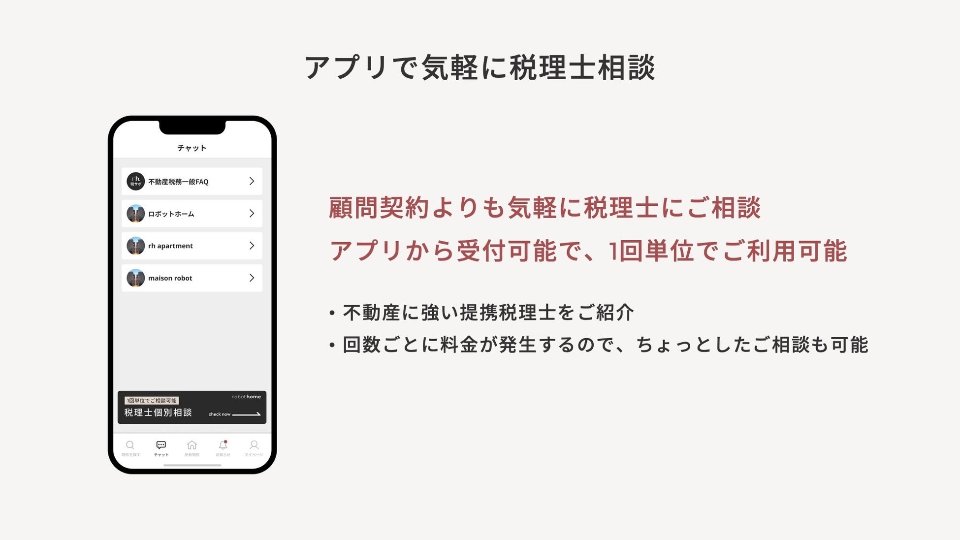 robot homeのアプリに新機能!税務のプロに相談できるウェルスコンサルティング機能をリリース