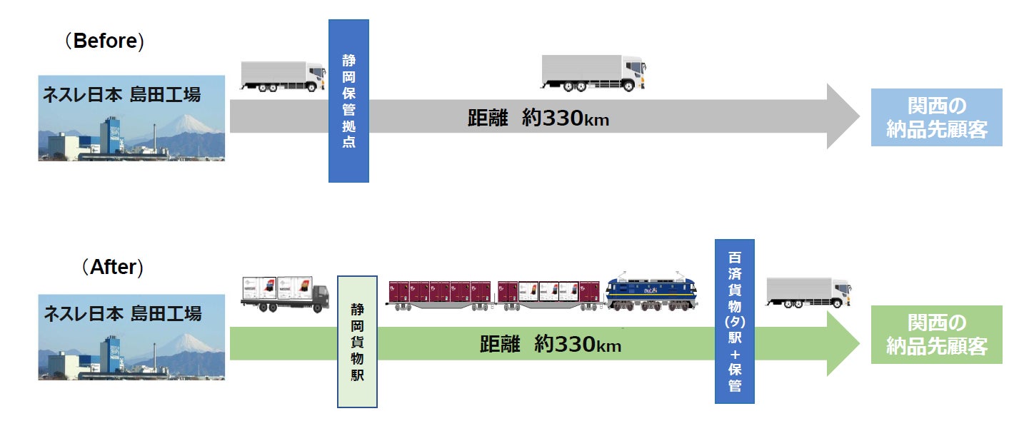 ネスレ日本、JR 貨物グループと連携し食品・飲料業界初(※1)の中距離帯での定期貨物鉄道輸送を開始