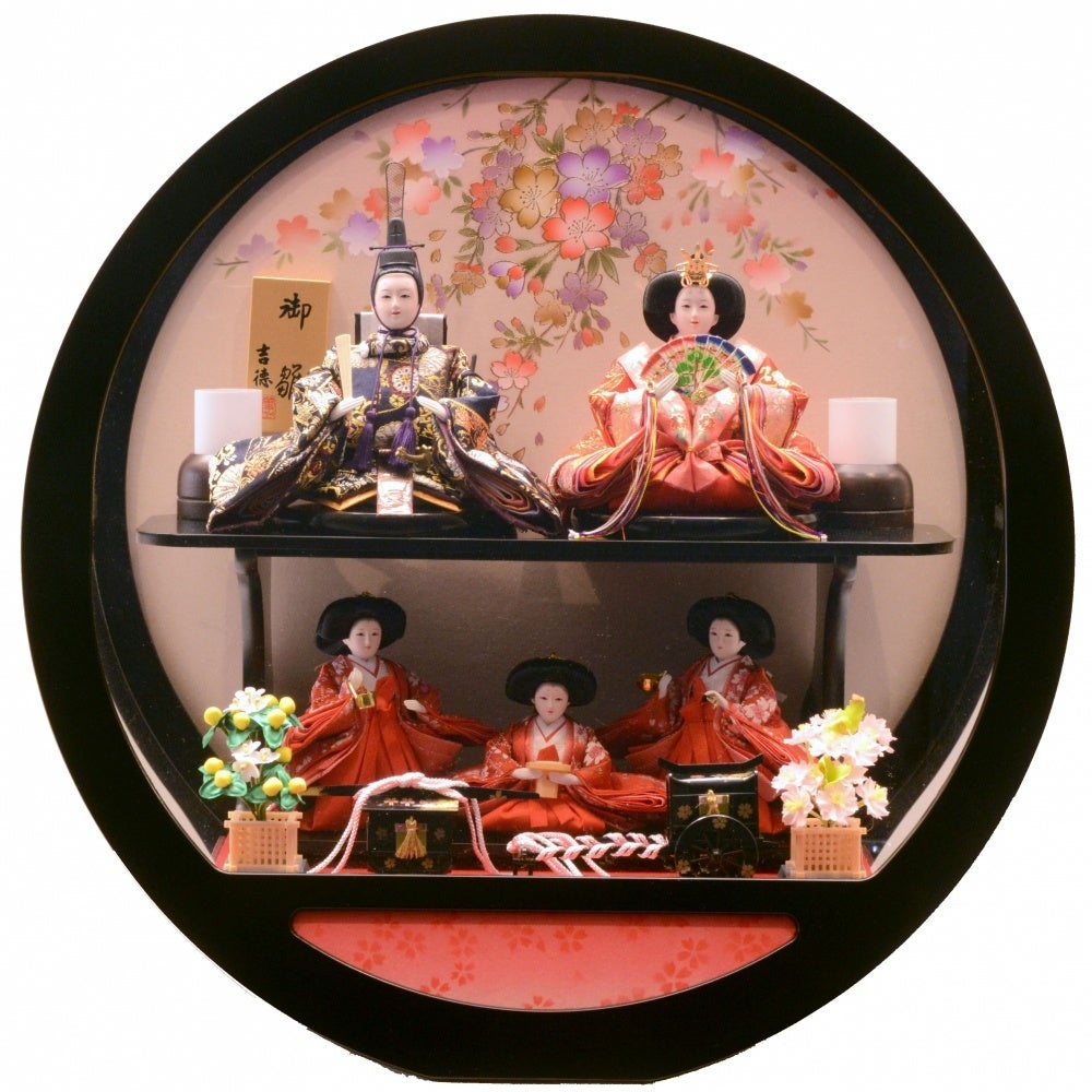 【8位】ケース五人飾り「金彩枝桜丸形黒塗アクリル」