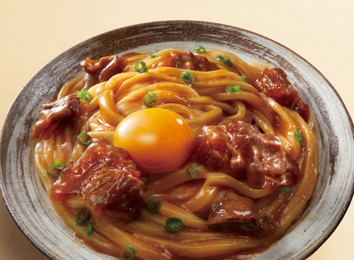 弊社で現在販売しているうどん調味料の「牛すじ入りカレー煮込みうどんの素」「牛すじ入り味噌煮込みうどんの素」は、具材を足さずにうどん一玉で満足感のある食事が完成できると評価をいただいています。そこで、評価をいただいている具材の満足感と伸長するまぜうどんを掛け合わせた、和えるだけで完成する「牛すじ入りスタミナまぜうどんの素」を発売します。