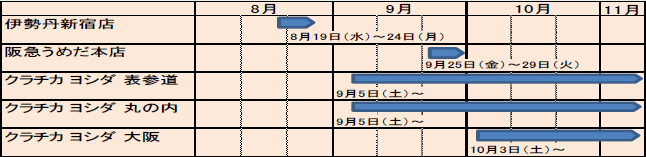 本商品は、8月19日(水)より順次、伊勢丹新宿店、阪急うめだ本店での特別催事期間と吉田カバン直営店のクラチカ ヨシダにて数量限定で発売いたします。