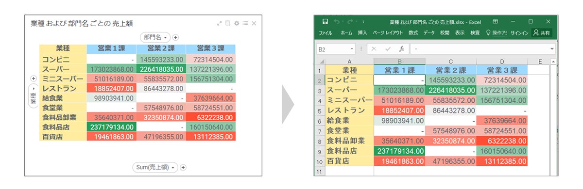 KPIチャートの幅と列・行数のコントロールが柔軟になり、表形式データがエクセルにそのままエクスポートできるようになるなど、Spotfireの分析結果を活用したレポートや共有に関する機能が強化されました。