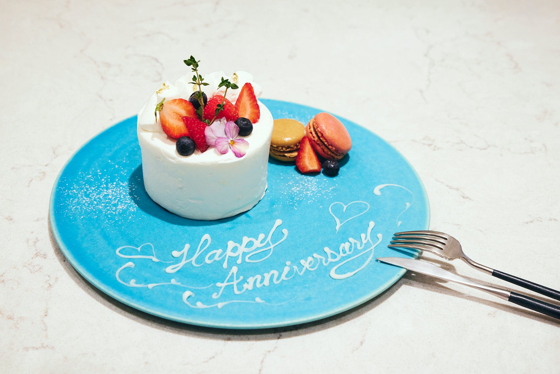 アニヴェルセルカフェでは、「いい夫妻の日」限定ディナーコースをご用意します。乾杯用のシャンパンを全組へプレゼントいたします。これまで夫妻がともに過ごしてきた日々をお祝いし、普段はなかなか伝えられない言葉を交わしながら、ディナーコースをお楽しみいただきます。当日撮影した写真をプリントできるラテアートや、事前にお預かりしたメッセージを添えてご提供する記念日にふさわしいプレートなど、表参道店・みなとみらい横浜店それぞれの演出で素敵なひとときを彩ります。