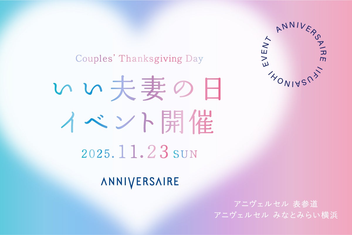 ゲストハウスウェディングを中心に、記念日プロデュース事業を展開するアニヴェルセル株式会社は、2025年11月23日(日・祝)の「いい夫妻の日」に、ご夫妻が感謝を伝え合い、“ありがとう”で絆を深めるイベント『Couples' Thanksgiving Day』をアニヴェルセル 表参道・アニヴェルセル みなとみらい横浜の2店舗で開催いたします。