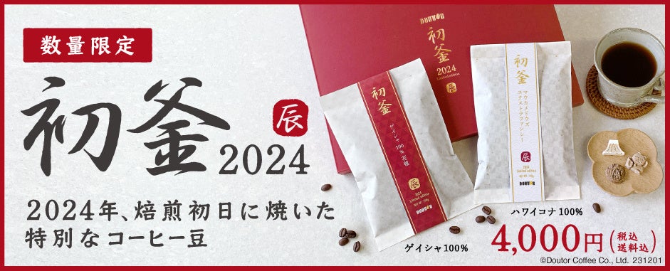 直火焙煎を採用するドトールコーヒーでは、新たな年を迎え、初めて焙煎釜に火を入れる焙煎初日の「初釜」コーヒーを、“心を新たに、今年一年お客様においしいコーヒーをお届けする”という想いを込めて焙煎しております。 年に一度の、この特別なコーヒーをお客様に味わっていただきたく、焙煎したてを「初釜」としてお届けします。