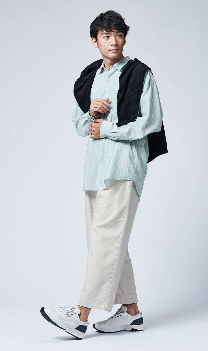 日常生活の中で靴を履いて歩く機会は多く、履きやすくどんなウエアを着ていても合わせやすいシンプルなデザインに仕上げました。