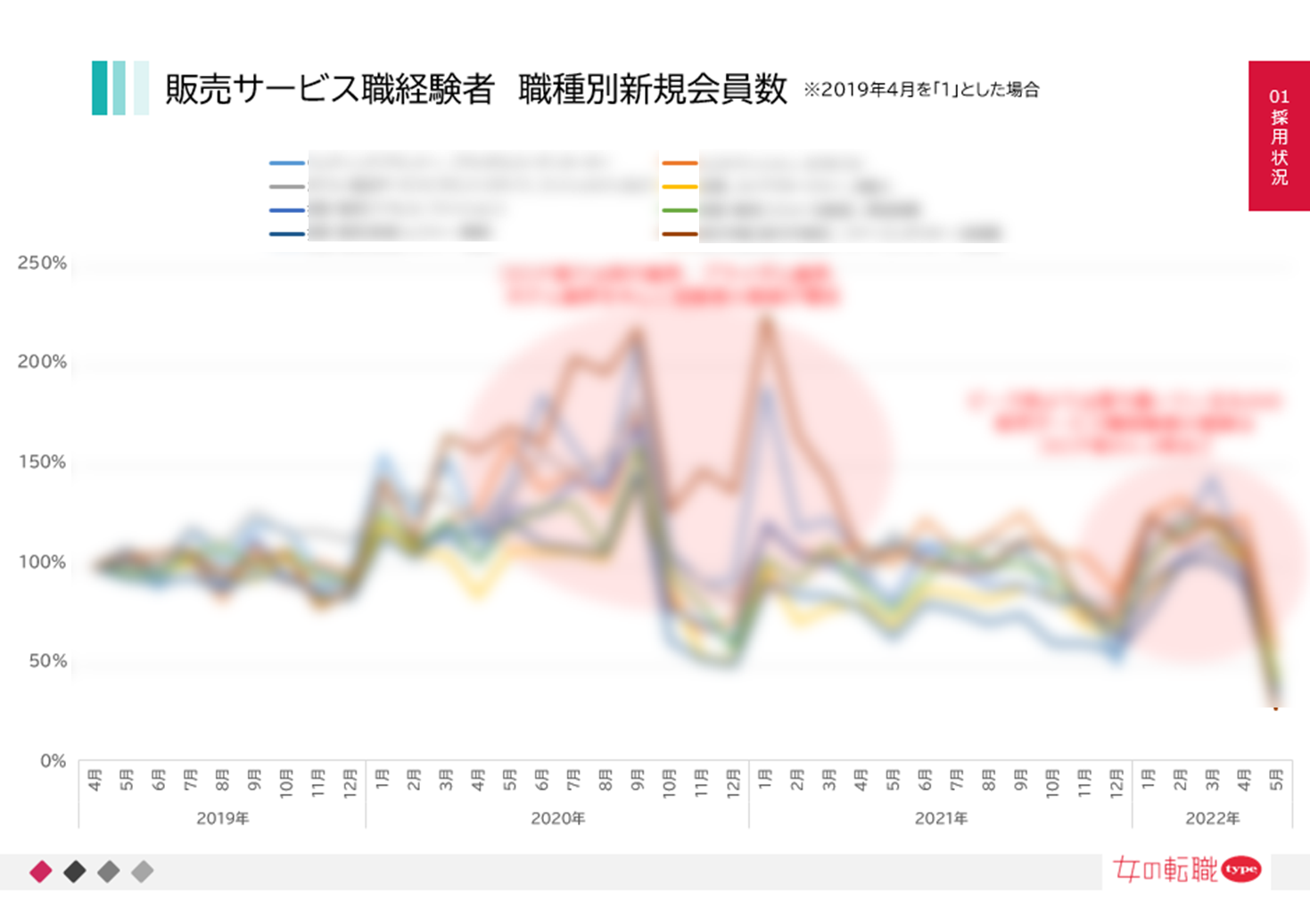 ・販売サービス職の採用市況まとめ(女の転職typeの求人推移など)