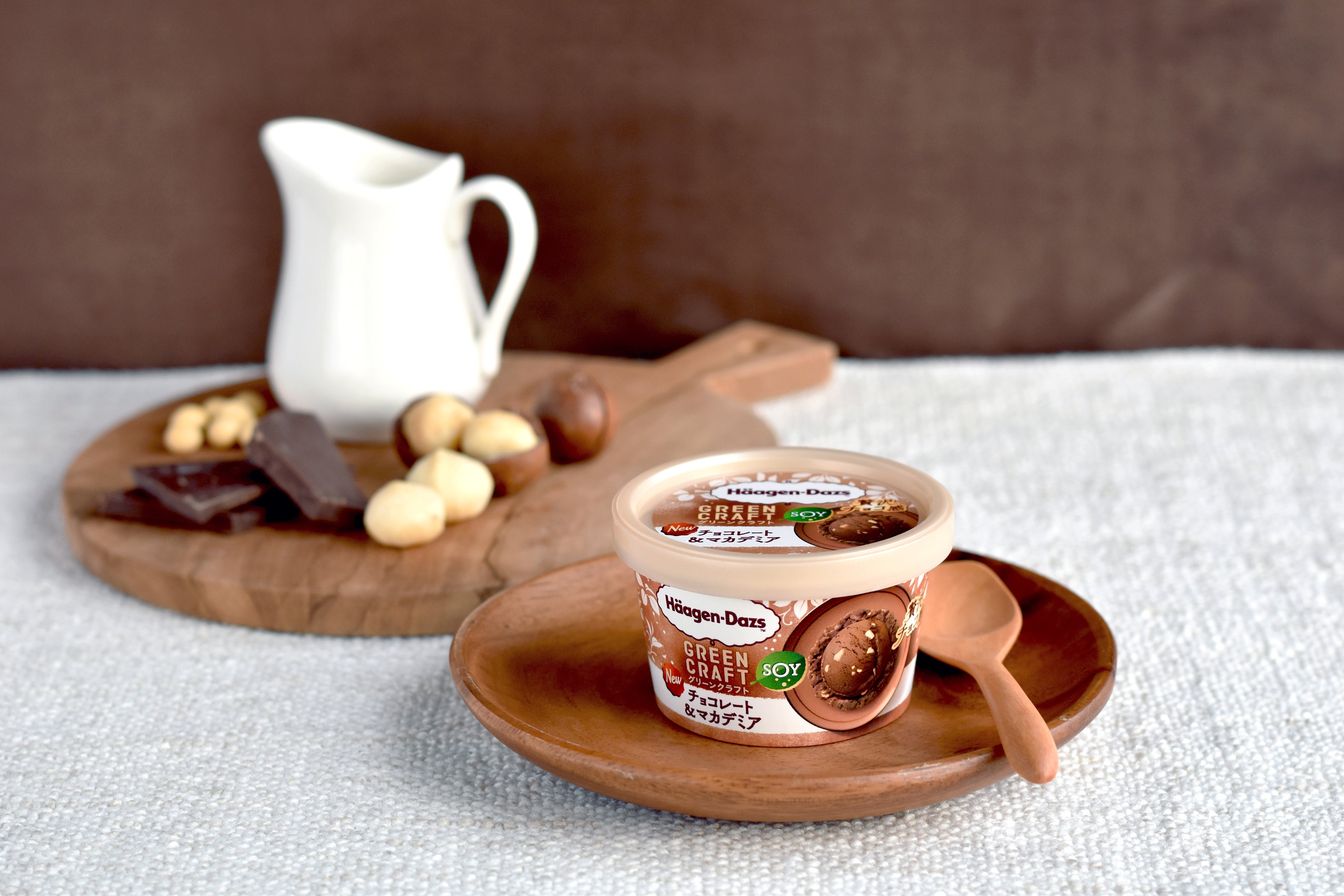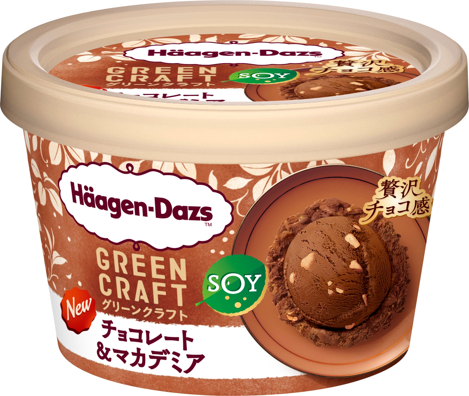 本商品は、豆乳ベースでありながらチョコレートの濃厚な味わいを楽しめるチョコレートアイスに、香ばしくカリッとした食感のマカデミアナッツを組み合わせた豆乳アイスです。「GREEN CRAFT」は、注目素材「植物性ミルク」をベースにした、牛乳不使用のシリーズです。従来のハーゲンダッツにはなかった、からだ想いとご褒美感を両立させた商品として、お客様からご好評いただいています。
