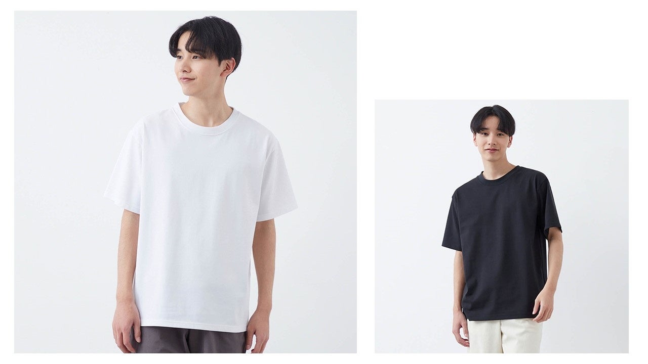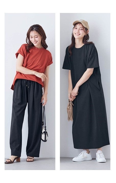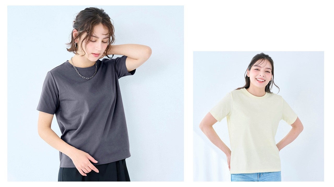 レディースはTシャツにとどまらず、ノースリーブ、ワンピースやパンツなど豊富なバリエーションで、最大6色・4サイズを展開します。また、汗ジミに悩む男性に向け、ビジネスから休日までマルチに活躍するTシャツをラインアップしています。