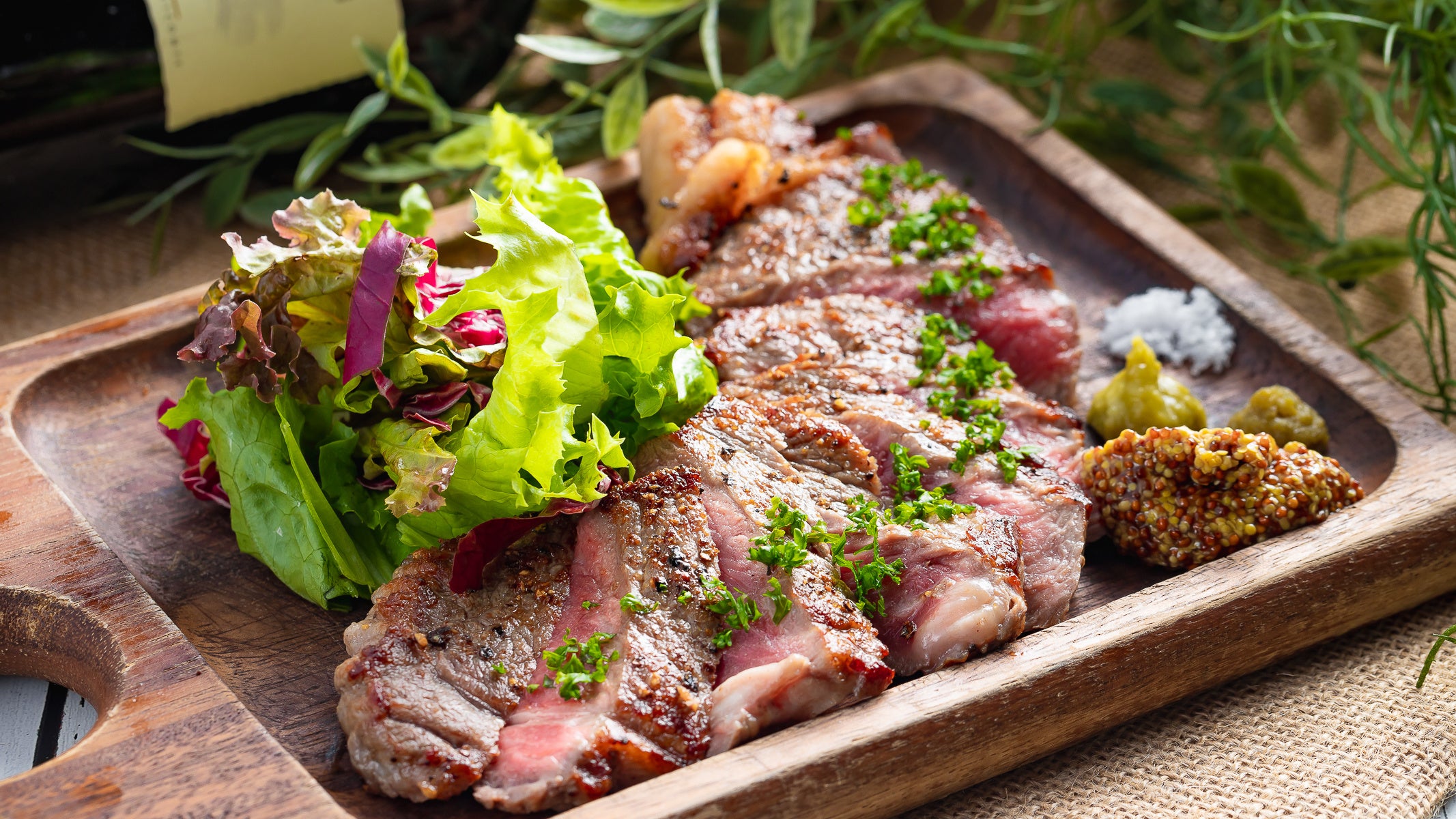 大麦牛そのものの美味しさを存分に堪能いただけるよう、シンプルにサーロインステーキでご用意いたしました。