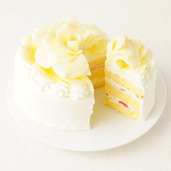 「スイーツにも美しさを取り入れ、アート感覚でも楽しめるようにしたい。」というMatt Rose氏の想いをもとに、白い薔薇がケーキいっぱいにデコレートされたホールケーキが誕生しました。繊細な薔薇の花びらは、全て1枚ずつ丁寧に職人が手作業で作っており、ミルクとバニラの繊細な香りをもつホワイトチョコレートで白く華やかな薔薇を表現し、仕上げに美しい金箔をあしらっています。土台のケーキはふわふわなスポンジのいちごのショートケーキで、見た目だけではなくおいしさにもこだわっています。人に愛を伝える時に渡す薔薇がデザインされたホールケーキは、特別な日に大切な方への贈り物としてぴったりな商品です。