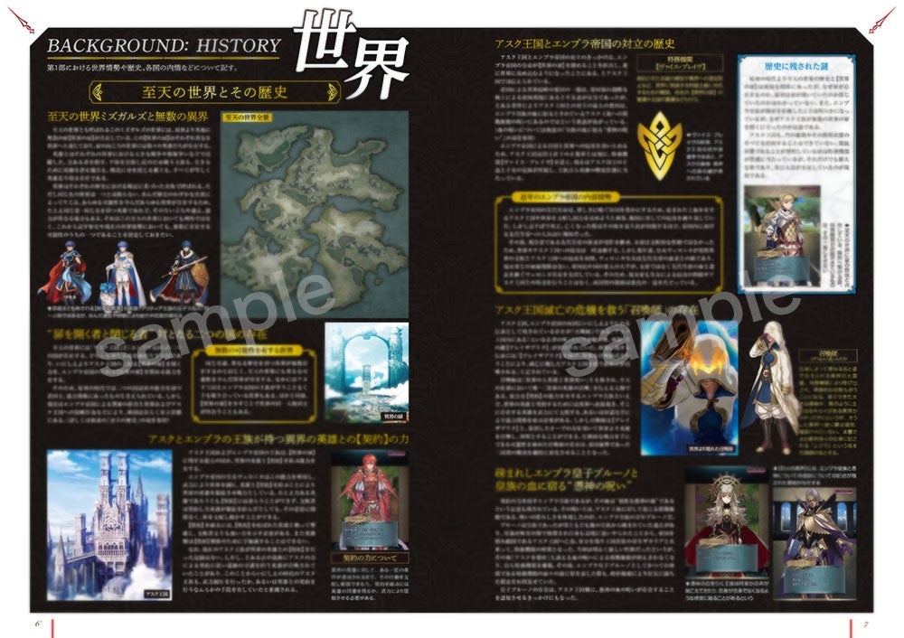 本書ではキャラクターイラストだけでなく、アスク王国とエンブラ帝国が紡ぐゲームの歴史を整理し、第1部~第3部の世界観と物語も解説していきます。