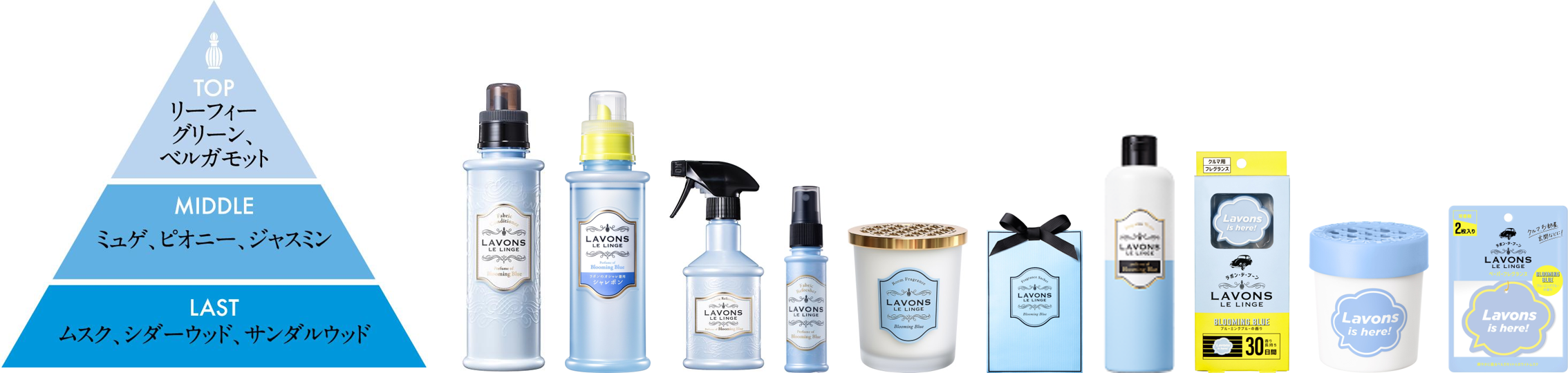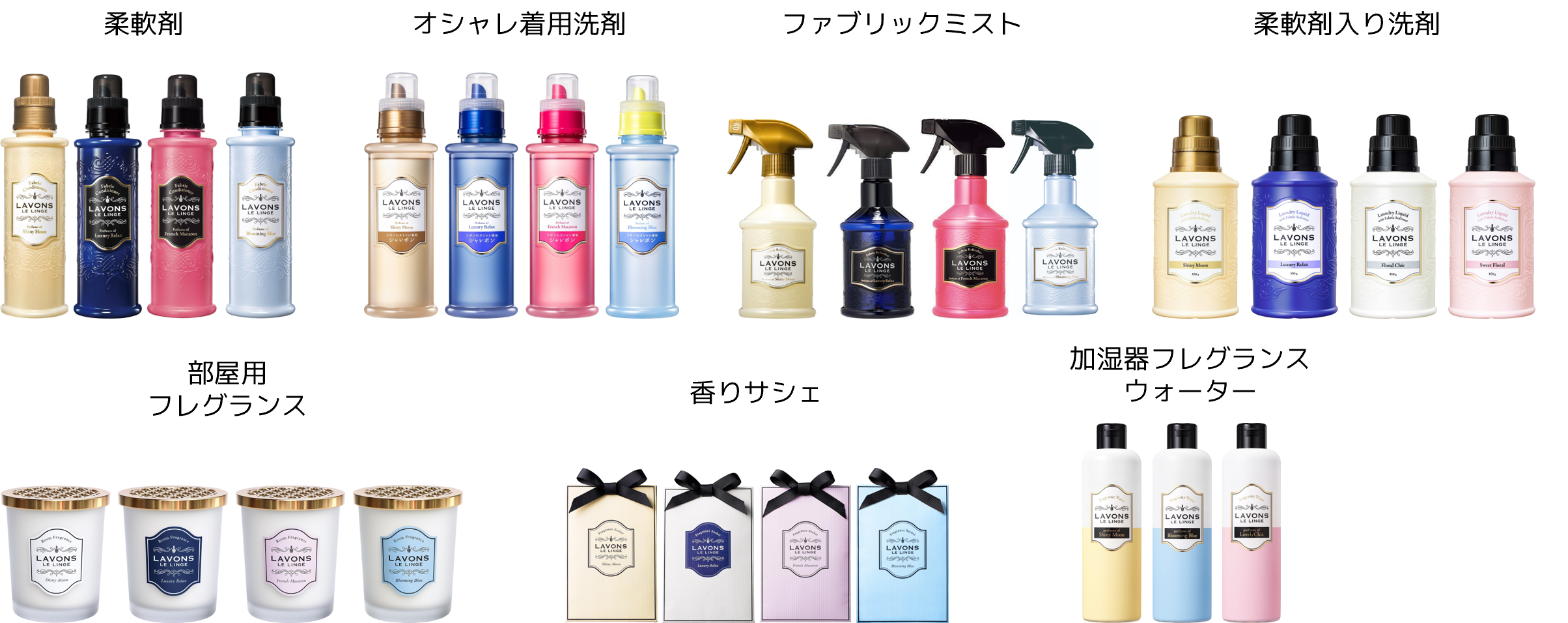 2013年9月の発売以降、柔軟剤、洗剤、ファブリックミスト、芳香剤を展開しており、お気に入りの香りを様々なシーンで楽しむことができます。