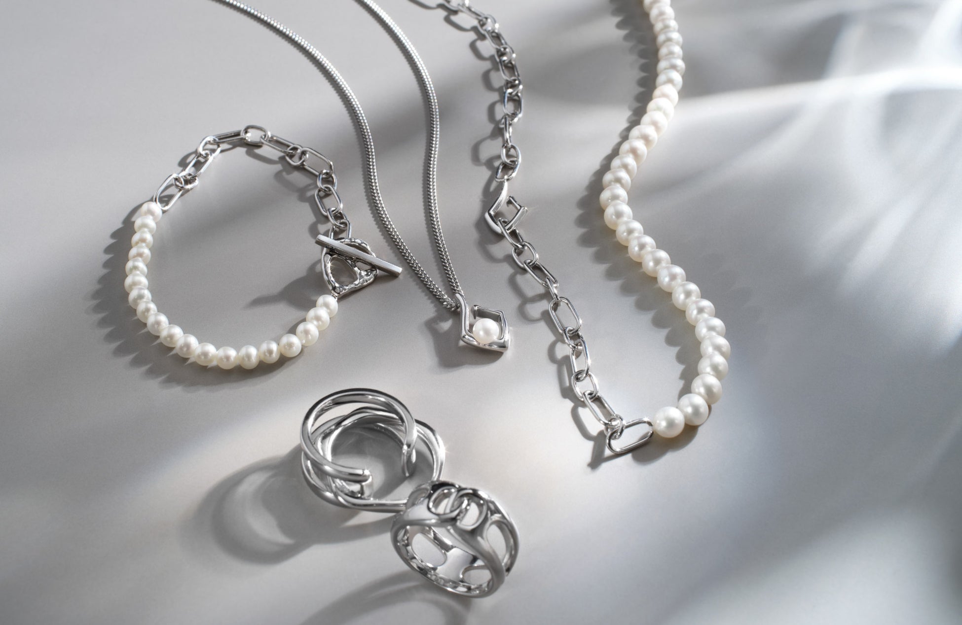 第4弾となる今回は、“深海の泡”をテーマに、海の底でゆらめく泡のように軽やかなニュアンスをまとったジュエリーが登場。シンプルで上品なパールとチェーンのアシンメトリーが優美なネックレスや、夏の装いに映える地金のボリュームリングなど、多彩なラインナップが揃います。普段使いしやすいデザインのシルバージュエリーに、トレンド感のある柔らかな印象のピアスや、その日の気分に合わせてアレンジできるリングなども登場。さりげない遊び心とデザイン性を兼ね備えたアイテムは、大切な人とのシェアジュエリーや特別なギフトにもおすすめです。
