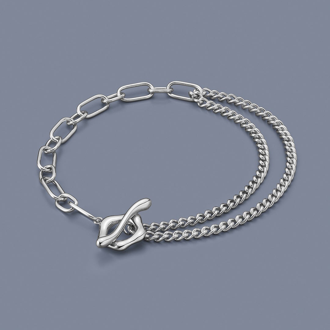 深海に差し込む光と泡のゆらめきを、地金の質感やフォルムで表現したリングやブレスレットもラインナップ。3連風の立体感のあるデザインや、動きに合わせて揺れるチェーンを施したリングなど、様々な深海の泡のニュアンスを込めました。シンプルながらもボリューム感と柔らかい印象を与えるシルエットは、指元に上品かつ夏らしい涼やかな印象を演出。形の異なる空洞が連なるバブルデザインのリングは、モードな印象と程よい軽やかさを加え、コーディネートにリズミカルな遊び心をプラス。ブレスレットは、デザインチェーンを重ね、留め具部分に「Canal 4℃」らしい曲線美を添えたデザインに。重ね付けはもちろん、1本でも夏の装いを華やげるジェンダーレスなジュエリーです。
