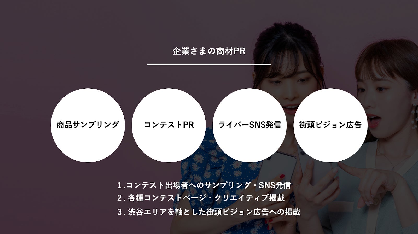 「女子大生のマーケティング会社」として創業。オンライン配信ミスコン『MODECON』の運営事業、ライバーマネジメント事業を中心にライブ配信市場のシェアを拡大しています。また、ミスコン出場者、SNSer、女子大生と協創するマーケティングの新しいカタチをソリューションとして企業に提供していきます。「人類の可能性を引き出す 〜挑戦できる社会をつくる〜」というMVを掲げ、当社のスタッフ、当社に関わる人々が、「挑戦する」ことにおいて様々な分野で社会のために貢献できる世界を目指します。