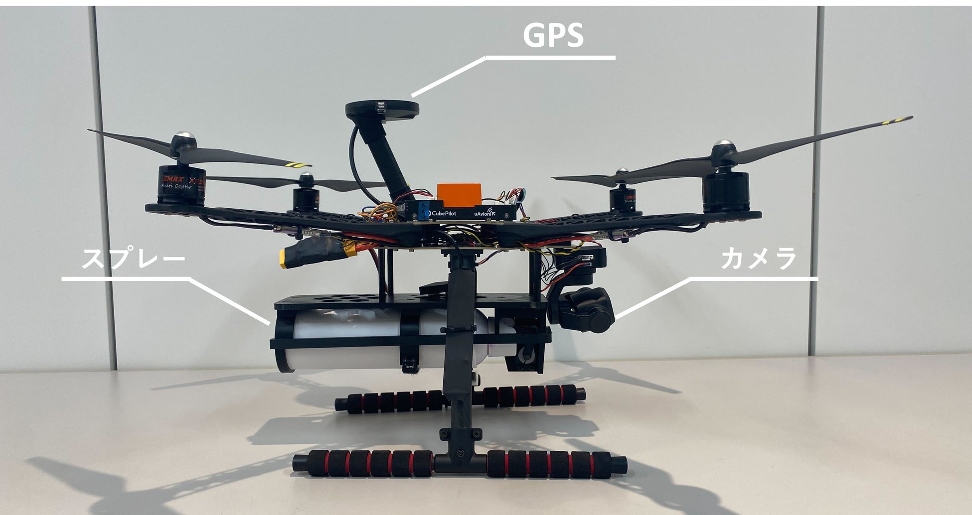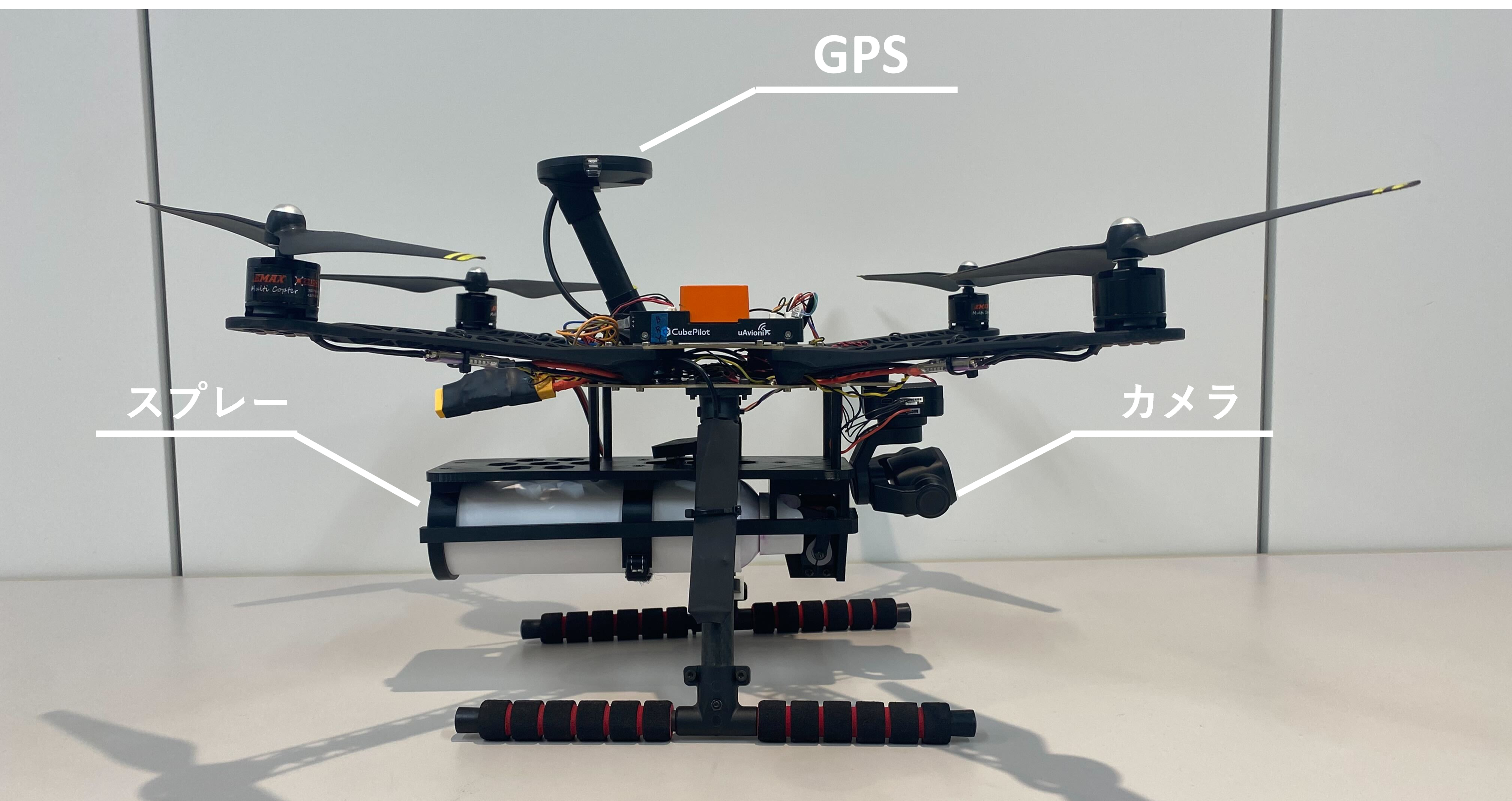 搭載物 : FPVジンバル式カメラ、スプレー缶