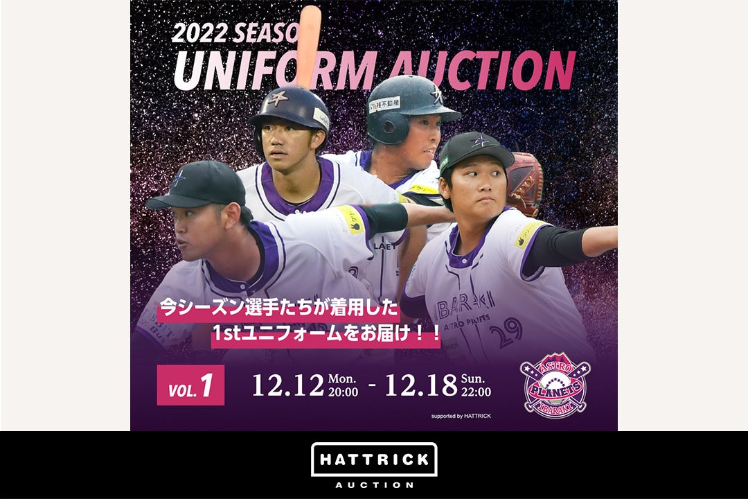 地球、そして私たちのために循環をデザインする「Circular Design for the Earth and Us」をパーパスに掲げ、大切なことにフォーカスして生きる人を増やすことを目指すバリュエンスジャパン株式会社(本社:東京都港区、代表:六車 進、以下 当社)は、同社が運営するスポーツチーム公認オークション「HATTRICK(https://auction.hattrick.world/)」にて、2022年12月12日(月)より茨城アストロプラネッツ 2022ユニフォームオークション【第1弾】、2022年12月19日(月)より【第2弾】、2023年1月9日(月)より【第3弾】を開催いたします。