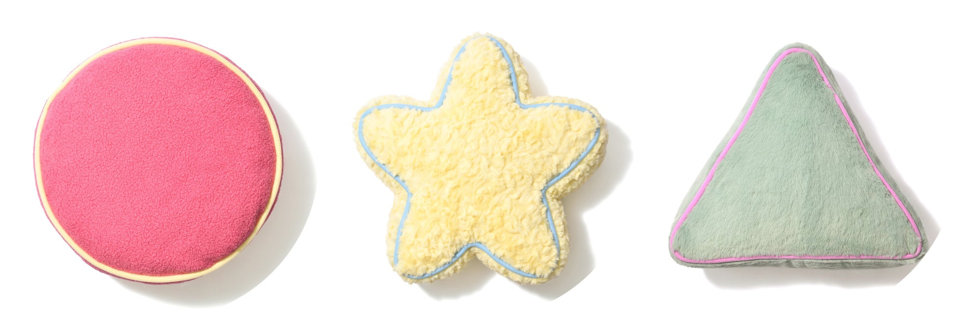 作品に登場する印象的なアイコンをモチーフにしたインテリアクッションです。ドラマを鑑賞しながら抱きかかえるのに丁度良いサイズです。クッションのカラーは劇中に登場する階段からインスパイアされています。3つ合わせても、1つでもインテリアとして楽しめるよう、それぞれ異なるファー素材を使用しています。リラックスタイムにぴったりな柔らかい触り心地も魅力です。