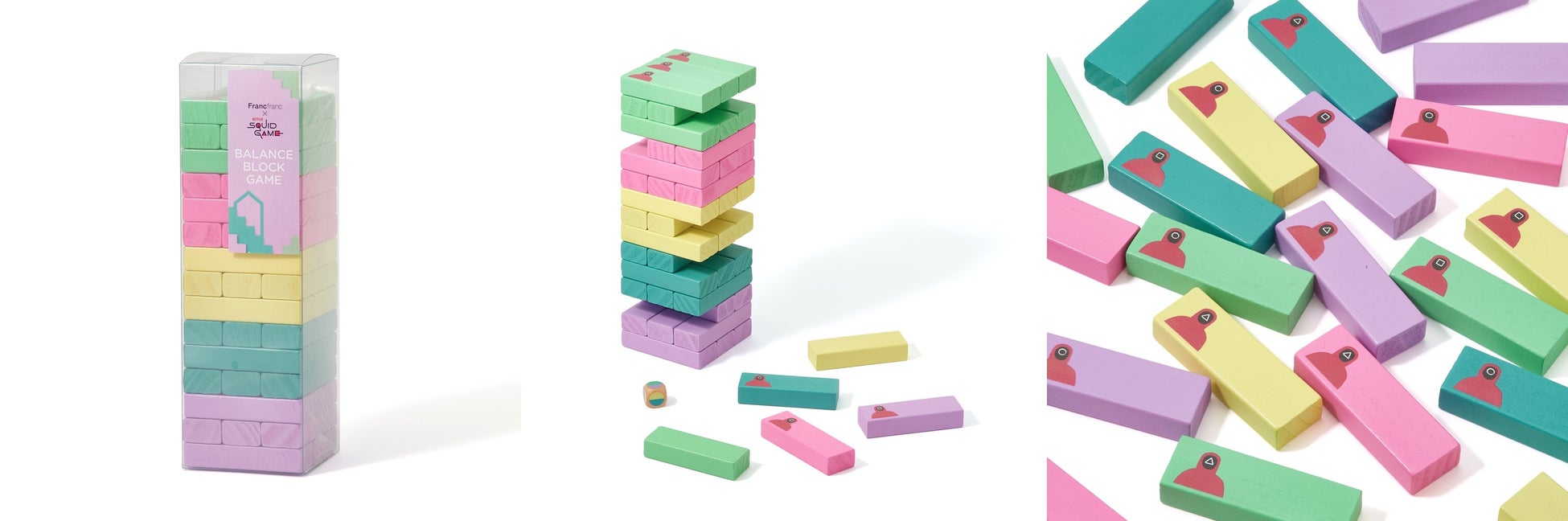作品の階段シーンのカラーを使用し、ポップなデザインに仕上げたバランスブロックゲームです。サイコロをふって、出た色のブロックをひくだけでなく、ピンクガードが隠れているブロックをひいたプレイヤーはもう1度プレイしなければならないハラハラドキドキのオリジナルゲームです。みんなで集まる年末年始のパーティーにおすすめです。