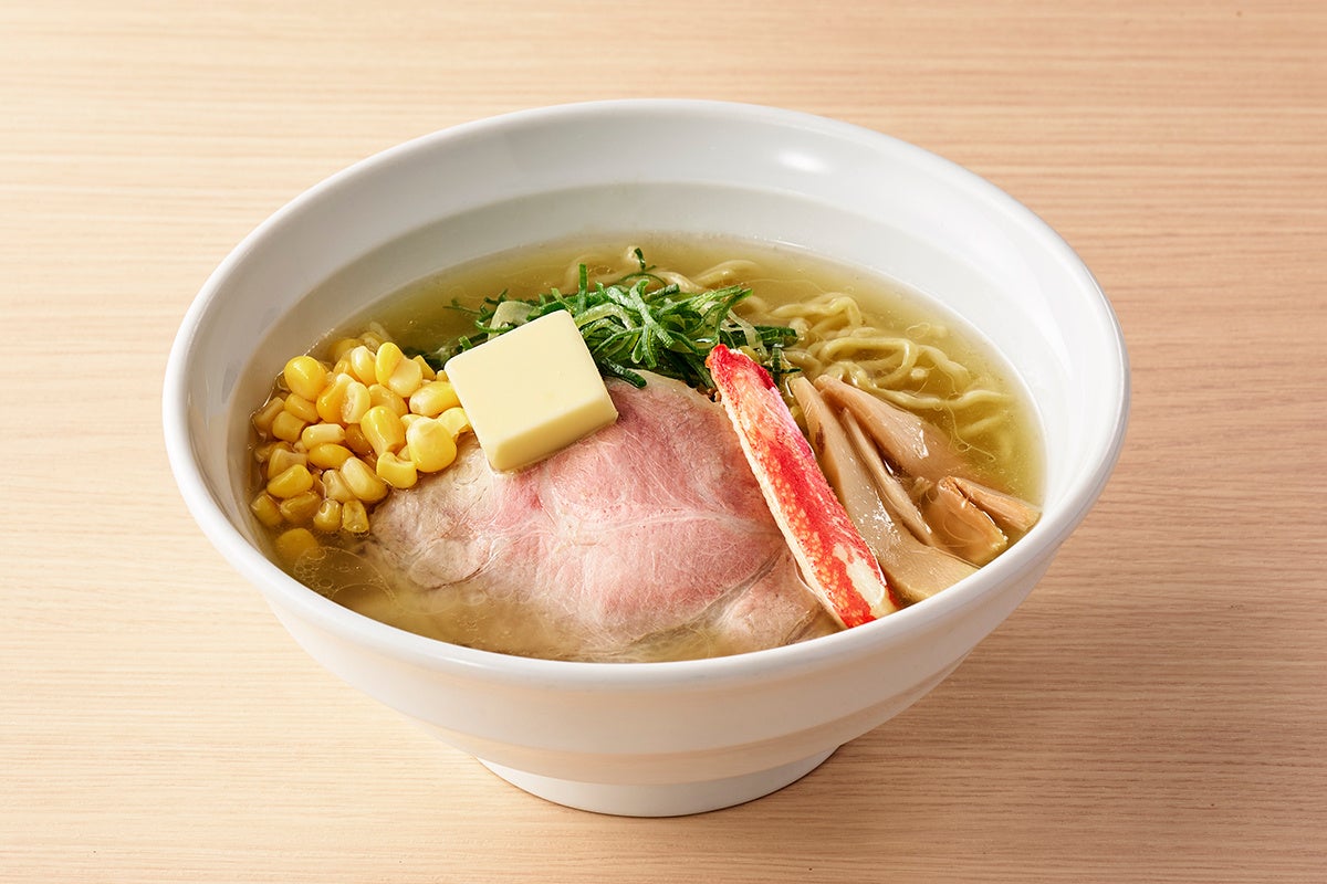 札幌市の「マルエス食堂」から、芳醇な鶏の旨味と風味を活かした透き通ったスープの塩ラーメンをイートインで提供します。中太の縮れ麵はスープと相性の良いもちっとした食感です。
