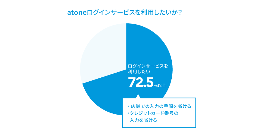 一方で、初めてのECサイトでのお買い物には、会員情報や注文情報の入力の手間がかかる課題がありました。当社で実施したアンケートにおいても手間を削減できる「atoneログインサービス」は72.5%(※2)の利用意向がありました。