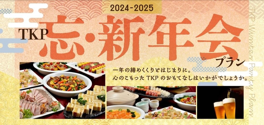 TKPが運営する施設でご利用いただける、「忘年会・新年会プラン2024-2025」が登場しました。厳選した食材で仕上げた料理の数々と、お料理に合わせたお飲み物や魅力的な特典が付いたプランで、忘年会や新年会、同窓会などの冬のパーティーを彩ります。
