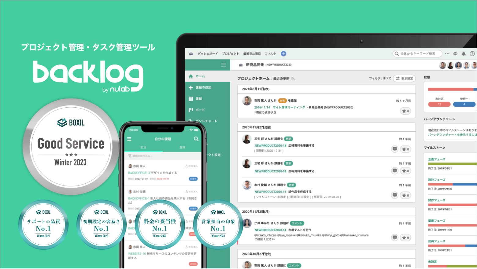 Backlogが「BOXIL SaaS AWARD Winter 2023」のプロジェクト管理・工数管理部門で「Good Service」ほか4つのNo.1を受賞