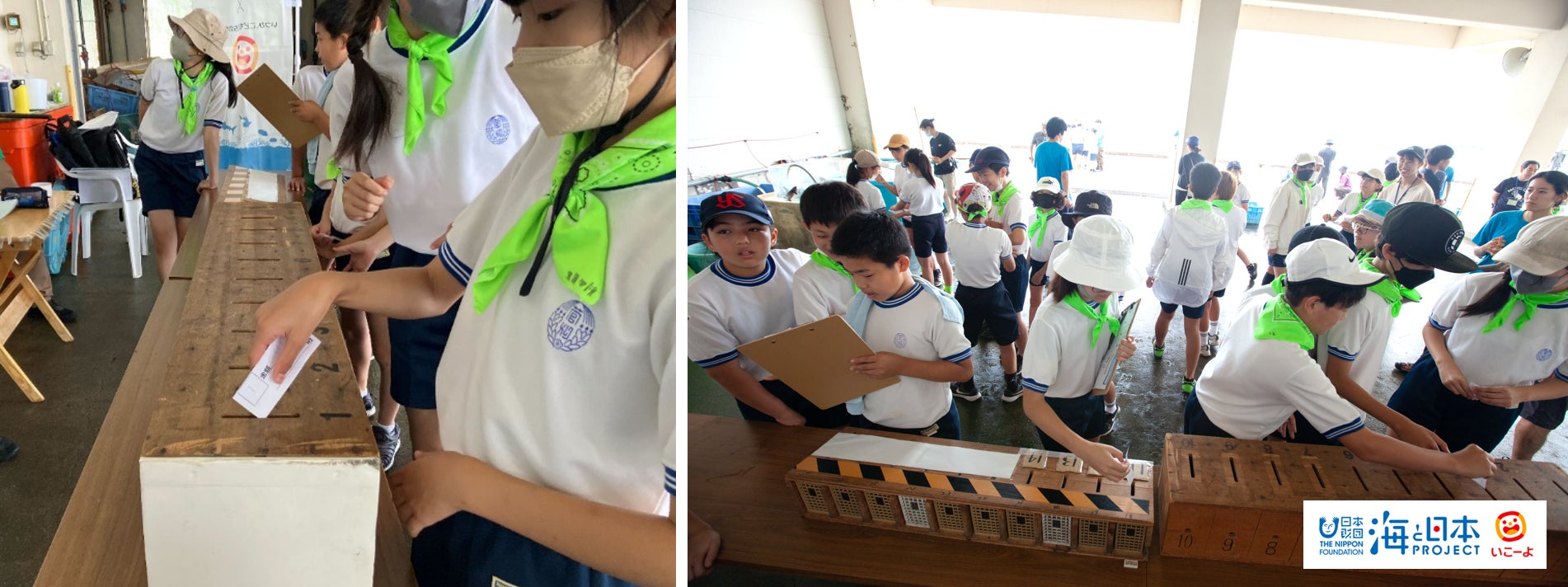 プログラムに参加したほとんどの児童がアジ・イワシのようなメジャーな魚でも姿と名称が一致しなかったり、切り身ではない生の魚に触ったりした経験もありませんでしたが、本物の魚を自分の手で選別する作業や、入札(競り)体験に挑戦。漁港で働く漁師や漁業協同組合の方々と交流し、漁獲される魚や漁港での仕事、水産流通の仕組みを学びました。また、当日は、勝浦市の照川由美子市長も訪れ、児童に勝浦市の海や生き物の魅力をお話され、児童たちも興味深げに聞きいっていました。こうした実地での幅広い体験を通じて、児童たちには、魚が当たり前のように食卓で食べられることへの感謝や、海が抱える課題が自分ごと化していく様子がみられるなど、大きな変化を感じられる一日となりました。