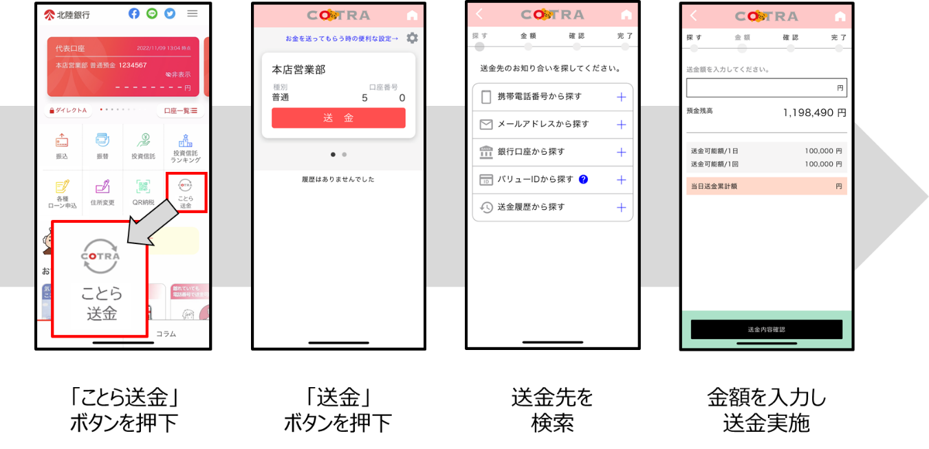 金融機関が提供するスマートフォンアプリに「ことら送金サービス」「ことら税金払込サービス」が搭載されるのは、北陸3県に本店を置く金融機関では初となります。