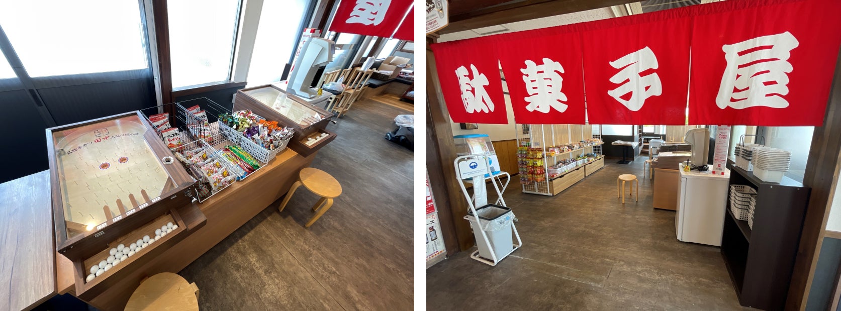 スマートボールはお食事後に小学生以下のお子様が遊ぶことができ、当たりの景品として店内に併設されている駄菓子屋の駄菓子をプレゼントします。なお、駄菓子は個別で購入することも可能です。