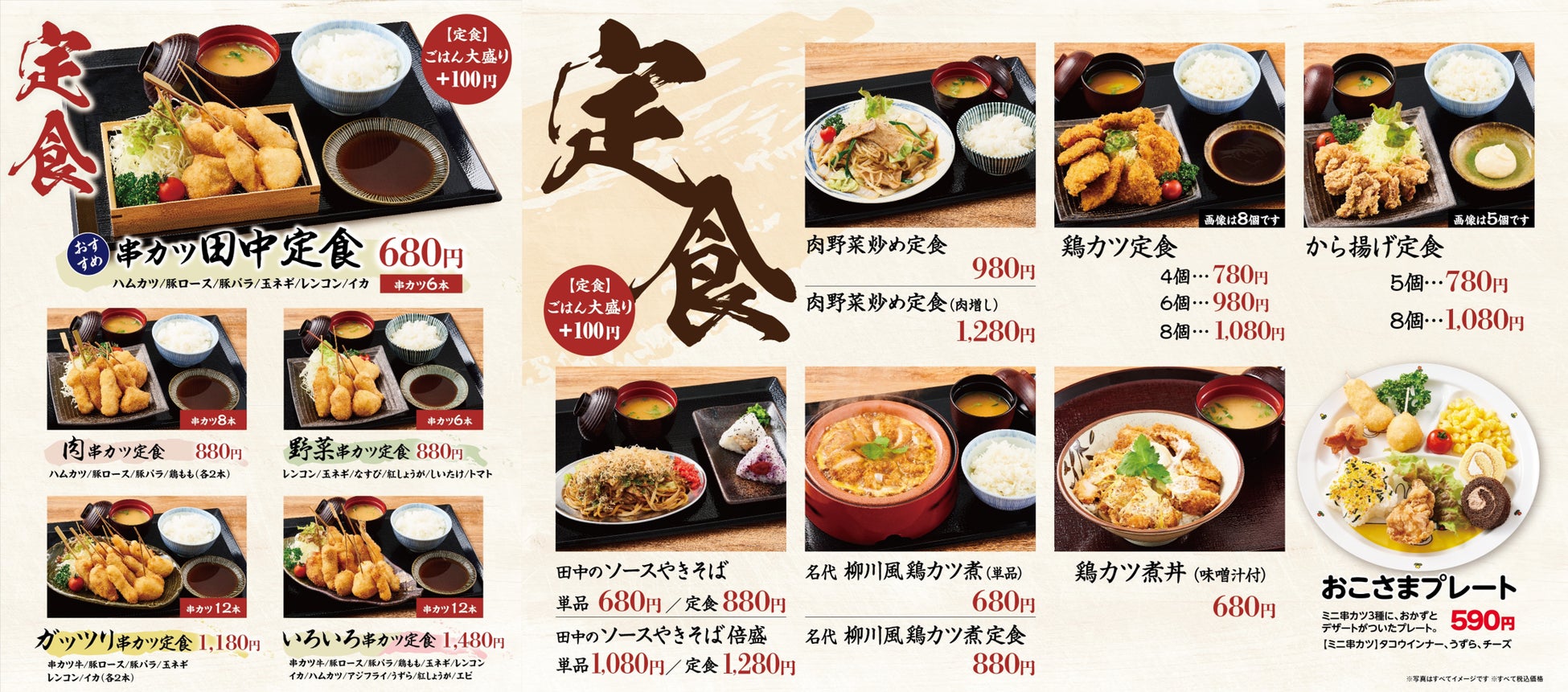・串カツ田中定食 680円(税込)→550円(税込)で提供