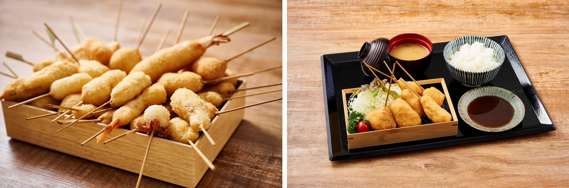 佐野店オリジナルの串カツと、串カツ定食(※イメージ)