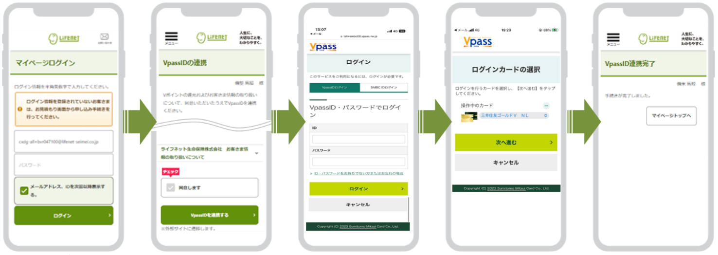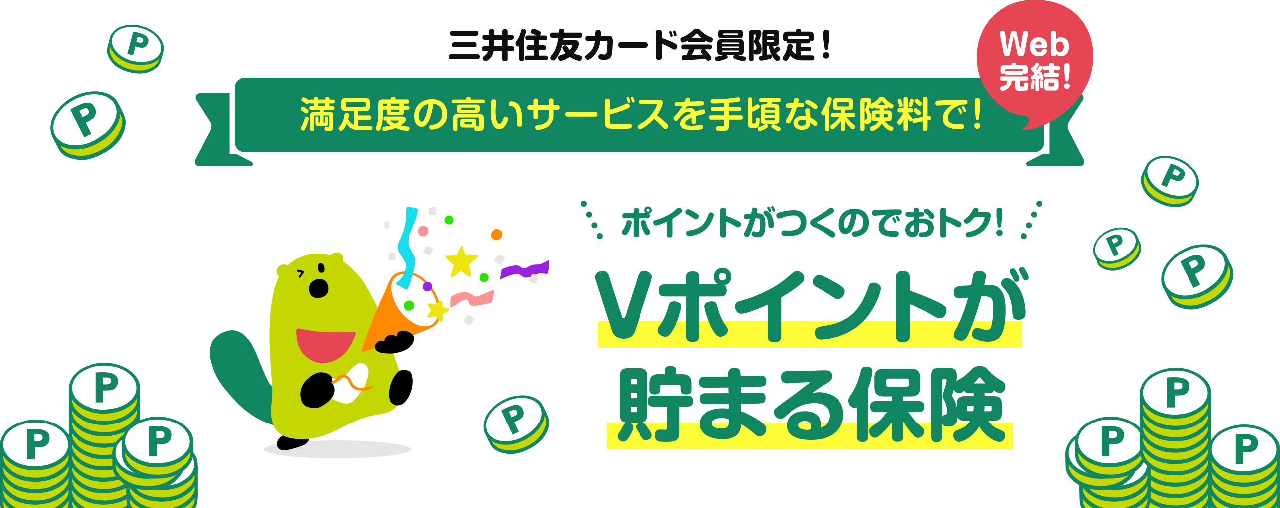 保険の申込時に、VpassIDまたはSMBC IDの連携と、Vポイントが貯まるカードをお持ちであればVポイント還元の対象となります。