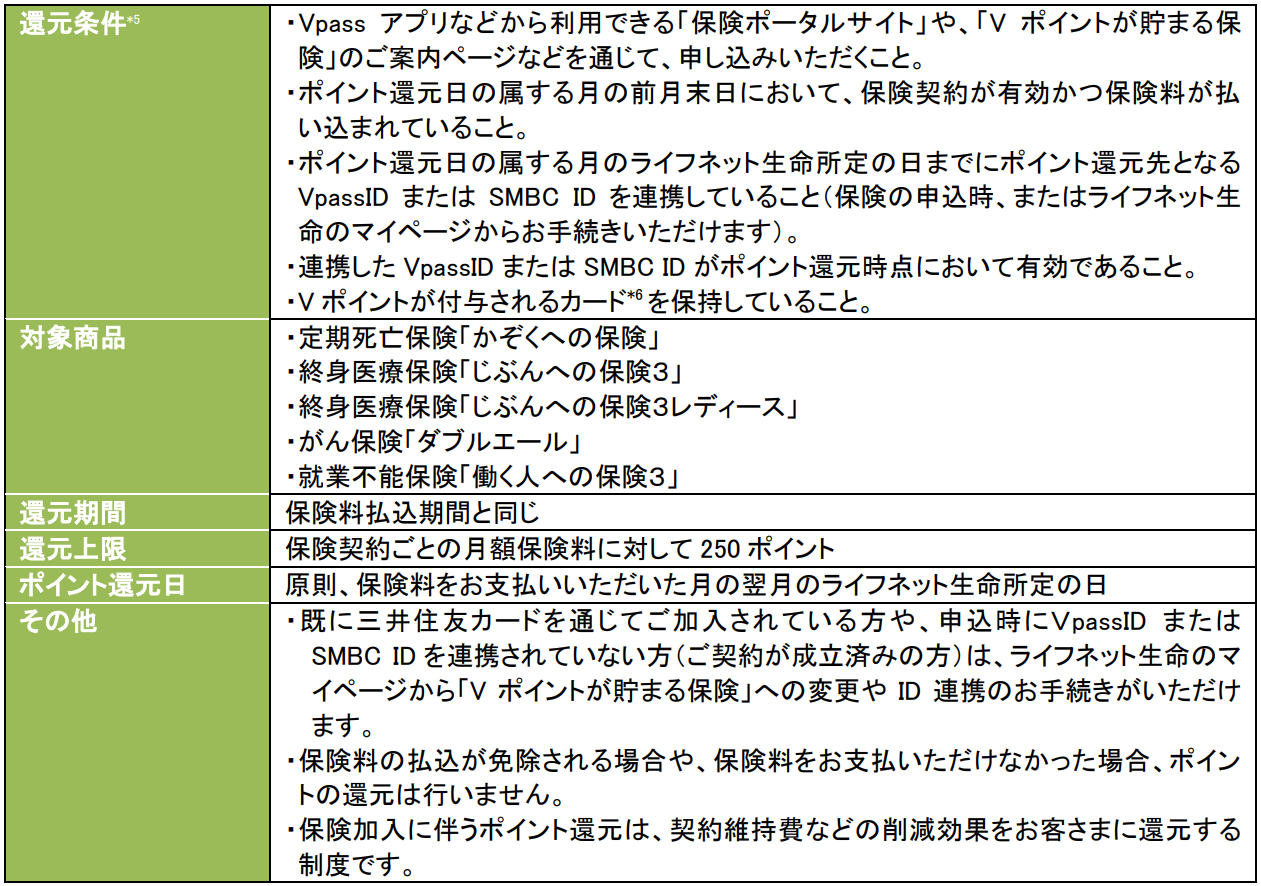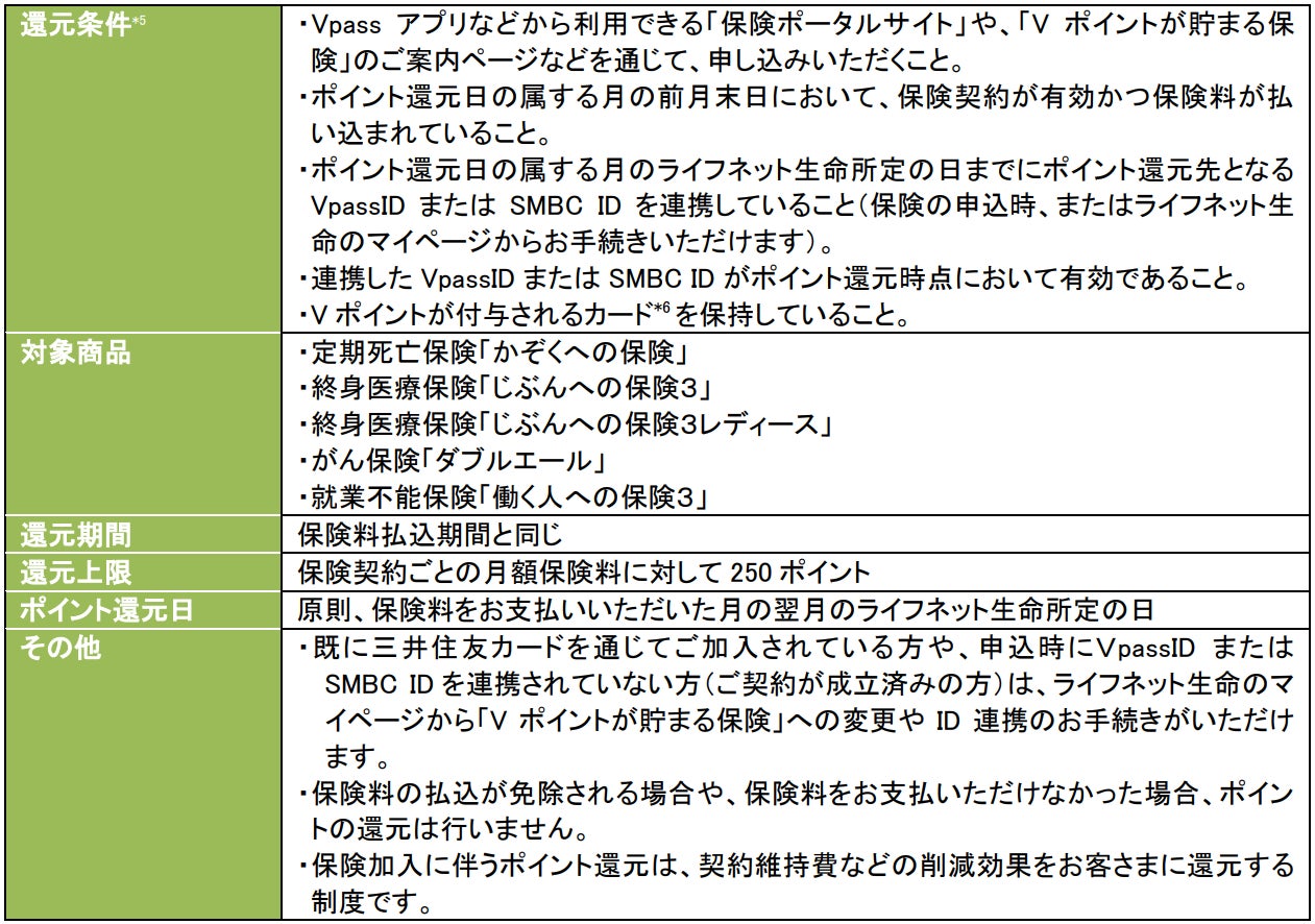 ライフネット生命の「Vポイントが貯まる保険」概要