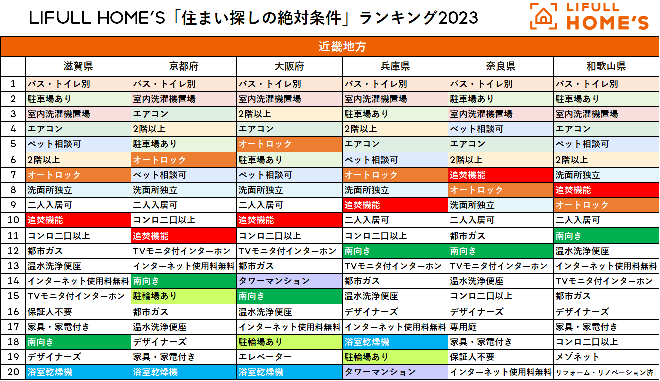 【近畿地方】2府4県すべて「オートロック」がTOP10に、セキュリティ意識が最も高いエリア!