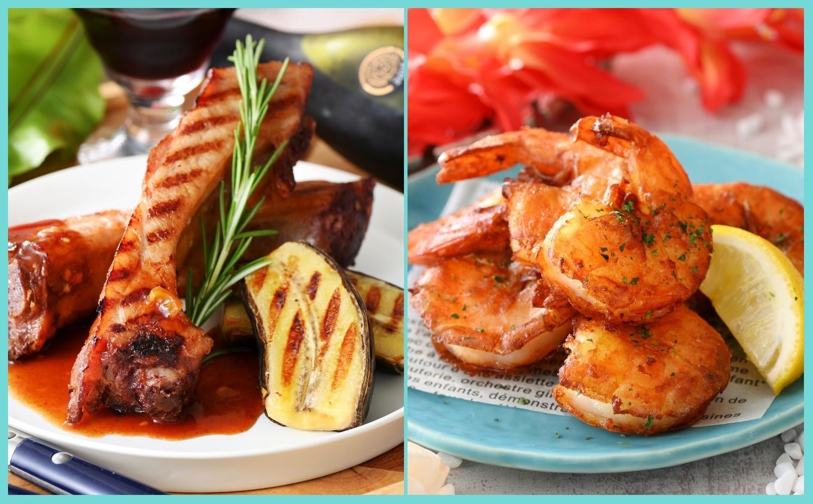 【豪快!グリルメニュー食べ放題!】“エクスブルー”などのニラックスブッフェ7店舗にて『ポークバックリブ』『ガーリックシュリンプ』などのグリルメニューが楽しめるプレミアムコースが登場!
